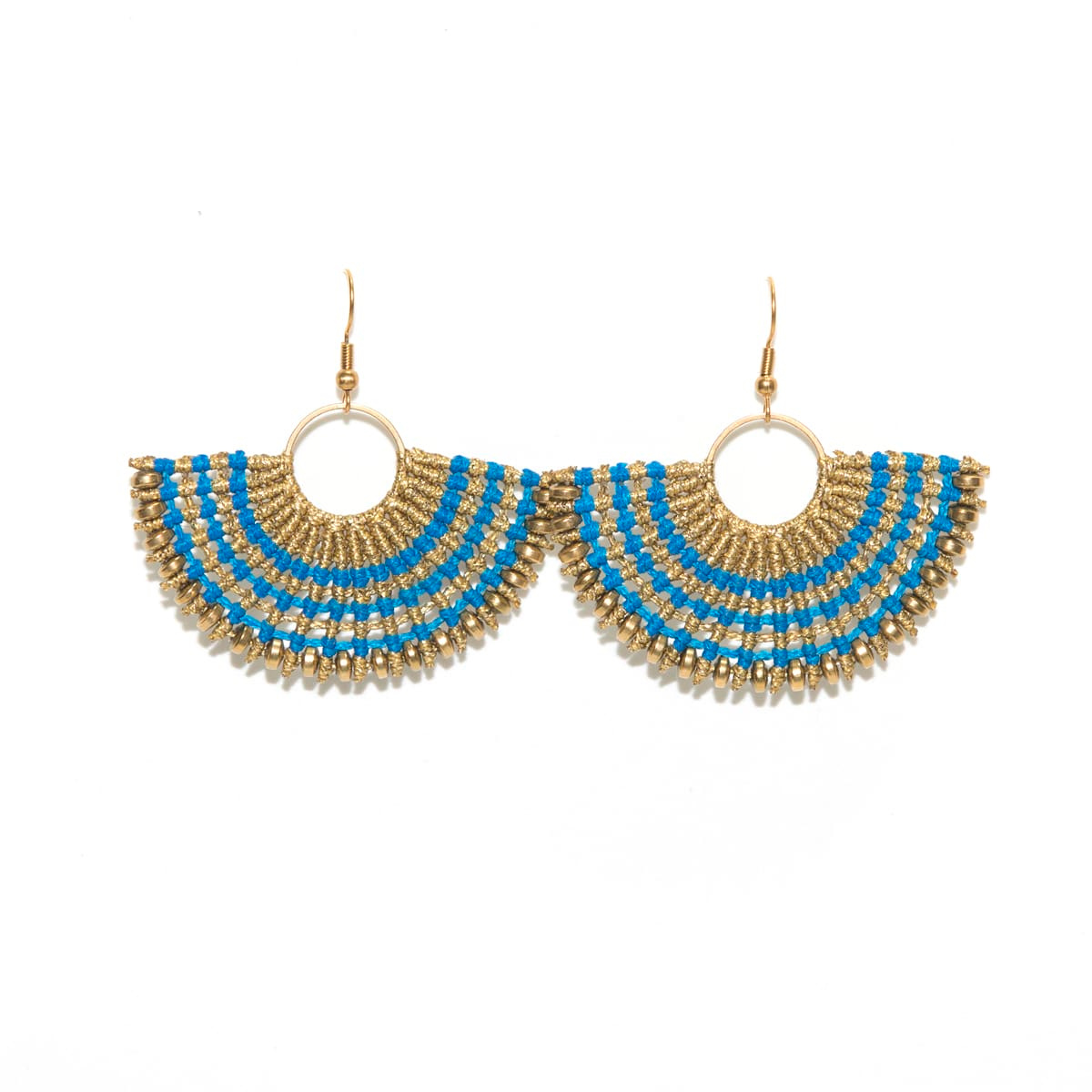 Σκουλαρίκια macrame ESSE μπλε χρυσό με κηροκλωστή ανθεκτική στο νερό χωρίς να χάνει το χρώμα της.