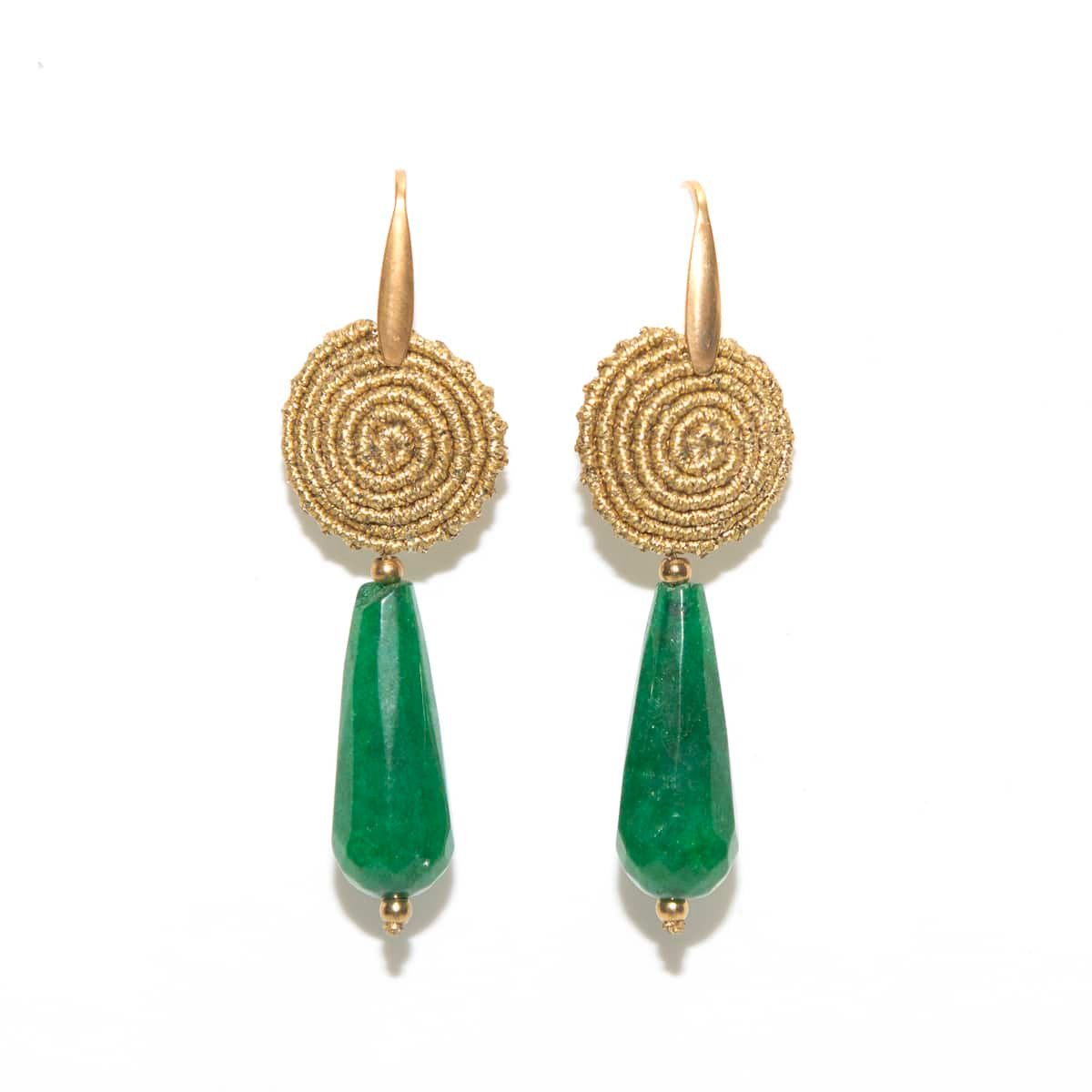 Σκουλαρίκια macrame SPIRA χρυσά χάντρα νεφρίτη πράσινη με κηροκλωστή ανθεκτική στο νερό χωρίς να χάνει το χρώμα της.