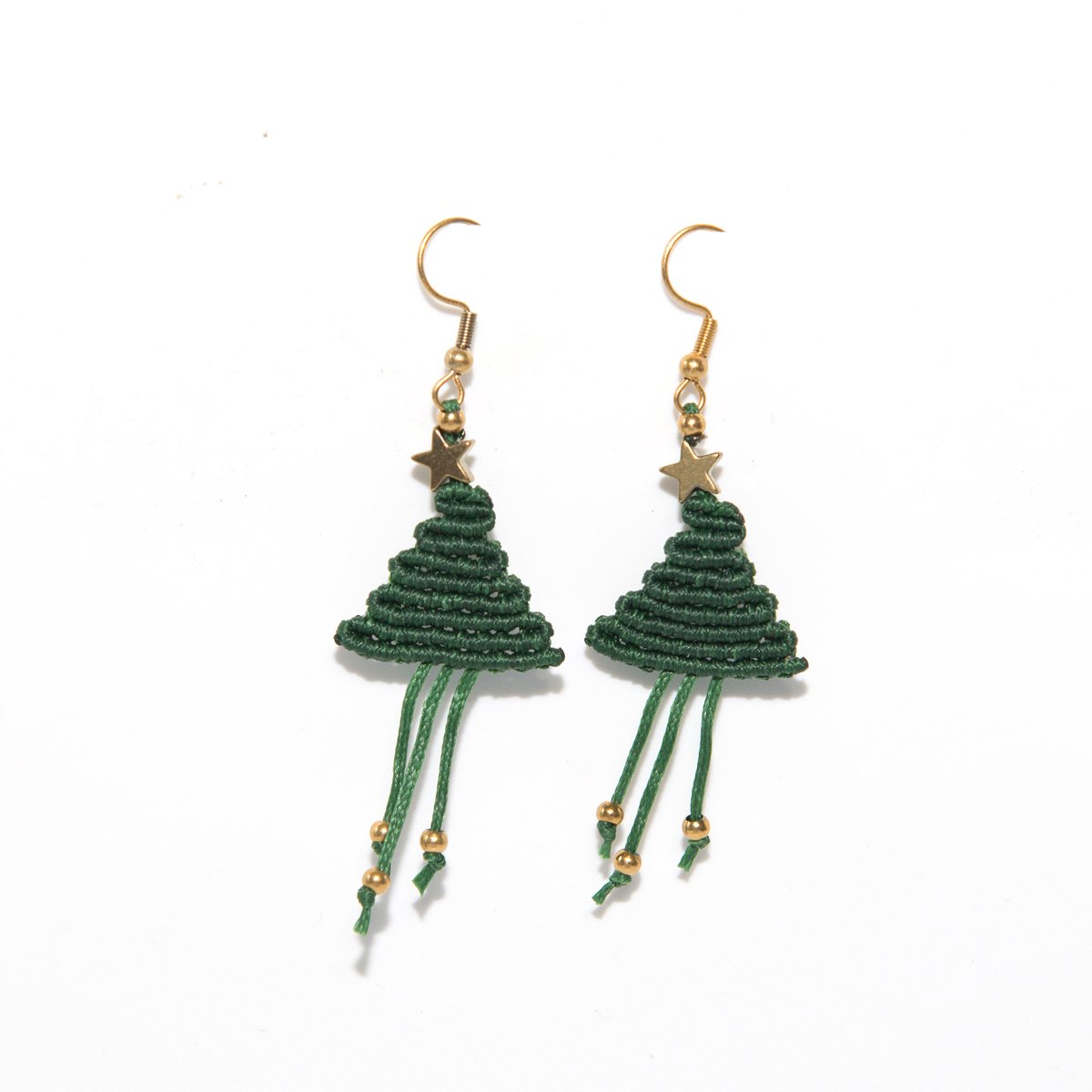 Σκουλαρίκια macrame CHRISTMAS TREE πράσινο με κηροκλωστή ανθεκτική στο νερό χωρίς να χάνει το χρώμα της.