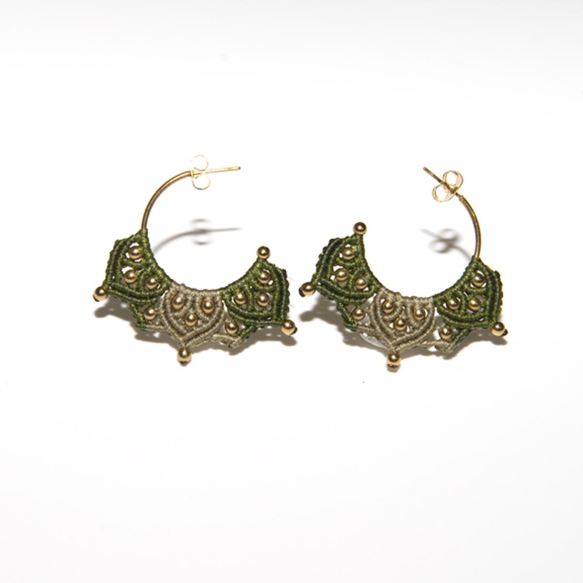 σκουλαρικια κρικος macrame EMEFA λαδι χρυση χανδρα