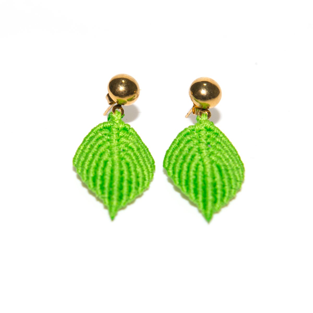 Σκουλαρίκια macrame FALL λαχανί με κηροκλωστή ανθεκτική στο νερό χωρίς να χάνει το χρώμα της. Με ατσάλινο κούμπωμα.