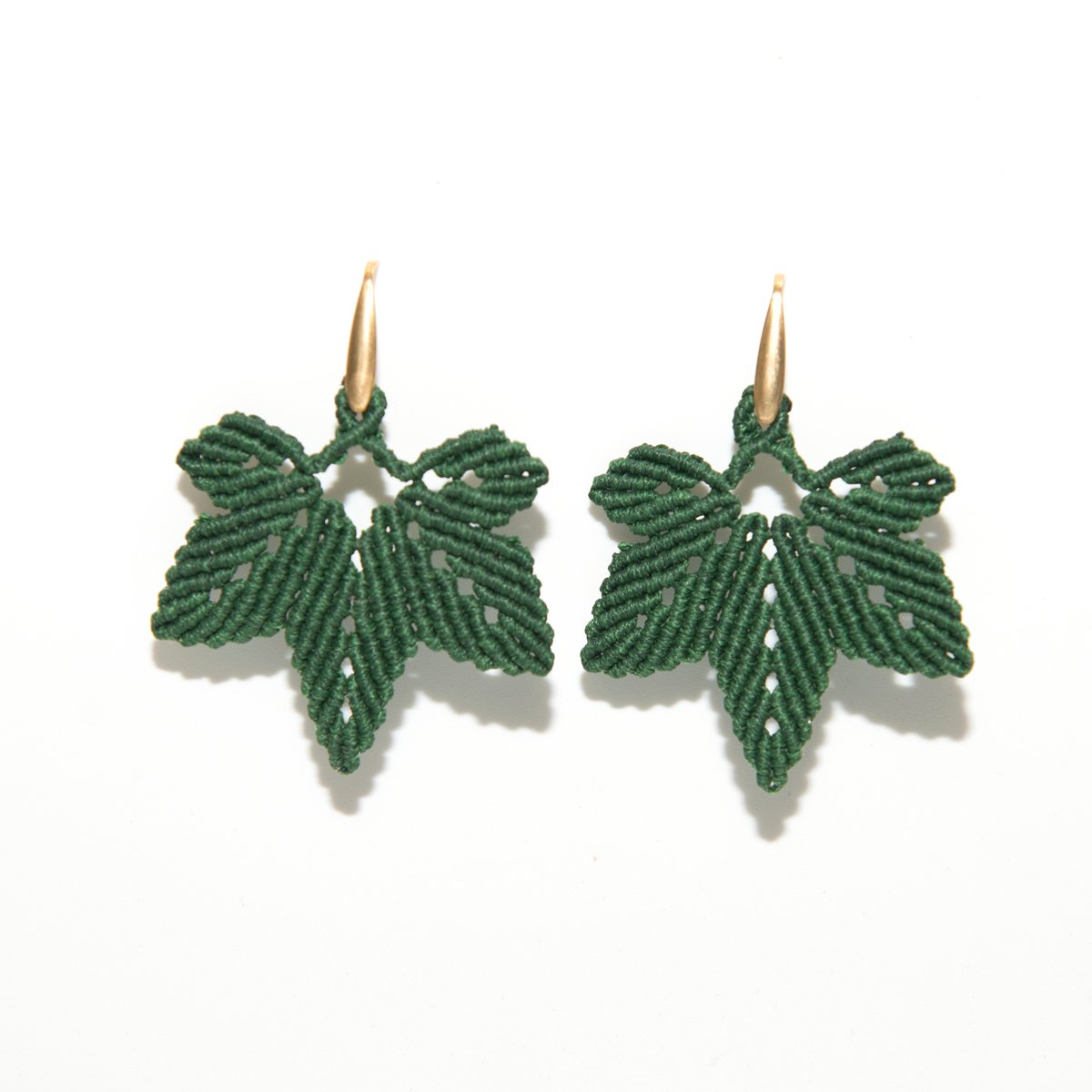 Σκουλαρίκια macrame FISSEHA πράσινο σκούρο με κηροκλωστή ανθεκτική στο νερό χωρίς να χάνει το χρώμα της.