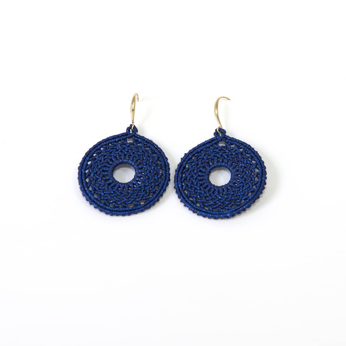 Σκουλαρίκια Macrame JAHIA μπλέ σκούρο μεταλιζέ