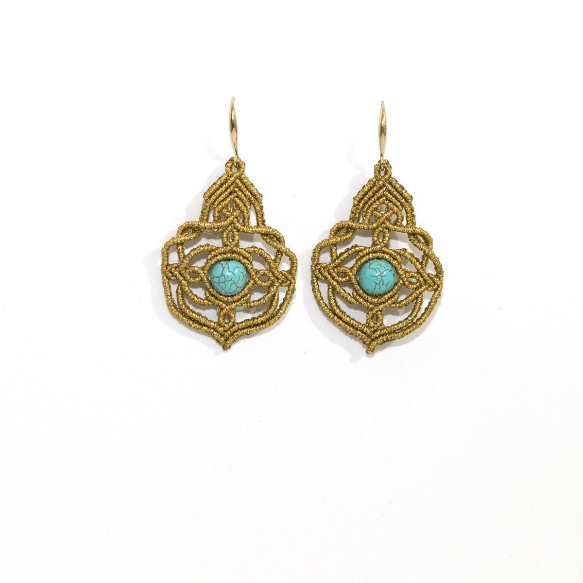 ΣΚΟΥΛΑΡΙΚΙΑ MACRAME MANDERE ΧΡΥΣΟ ΜΕ ΜΠΛΕ ΧΑΝΔΡΑ