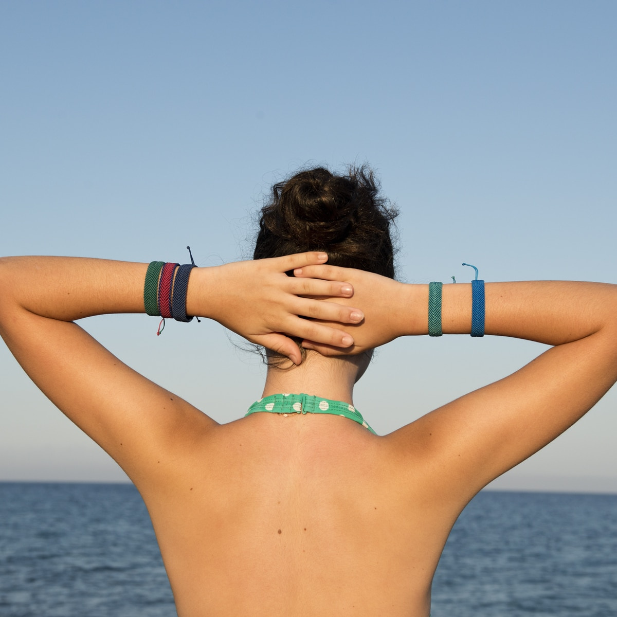 Χειροποίητο κόσμημα macramé με κηροκλωστή ανθεκτική στο νερό χωρίς να χάνει το χρώμα της. Με κούμπωμα αυξομείωσης.