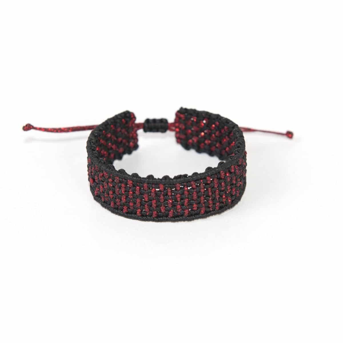 βραχιολι macrame AMANDAH μαυρο κοκκινο μεταλιζε