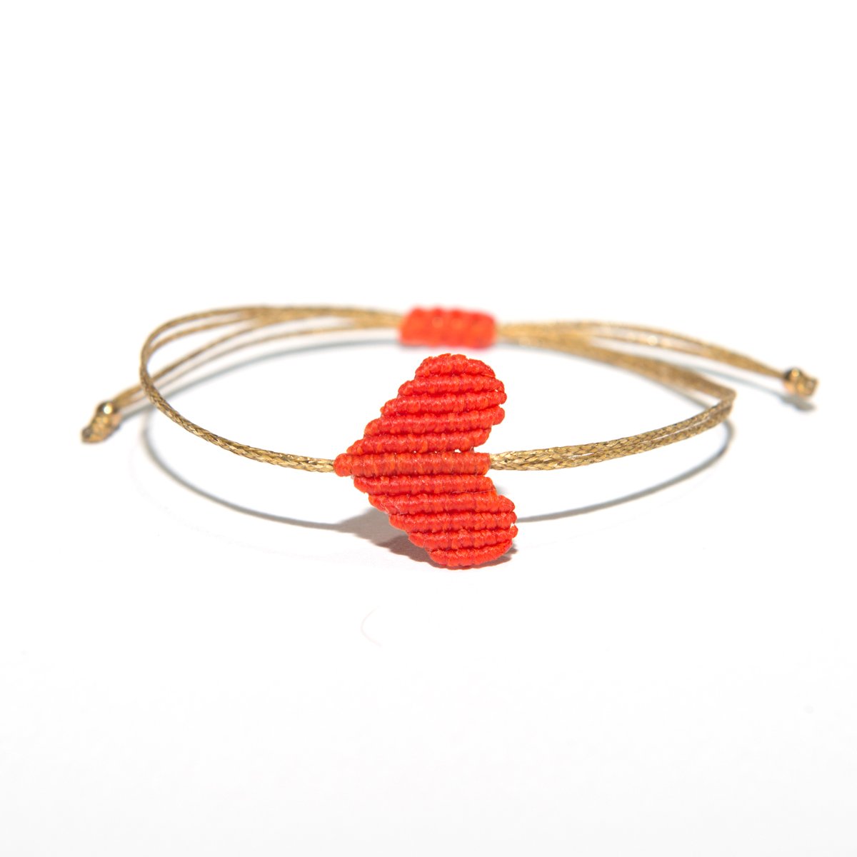 Βραχιόλι Macrame Καρδούλα Σκούρο Πορτοκαλί Χρυσό