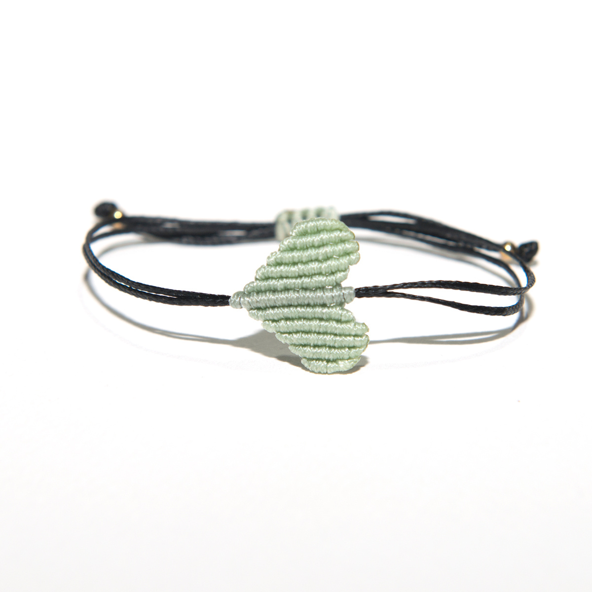 Βραχιόλι macrame καρδούλα βεραμάν μαύρο με κηροκλωστή ανθεκτική στο νερό χωρίς να χάνει το χρώμα της. Με κούμπωμα αυξομείωσης.