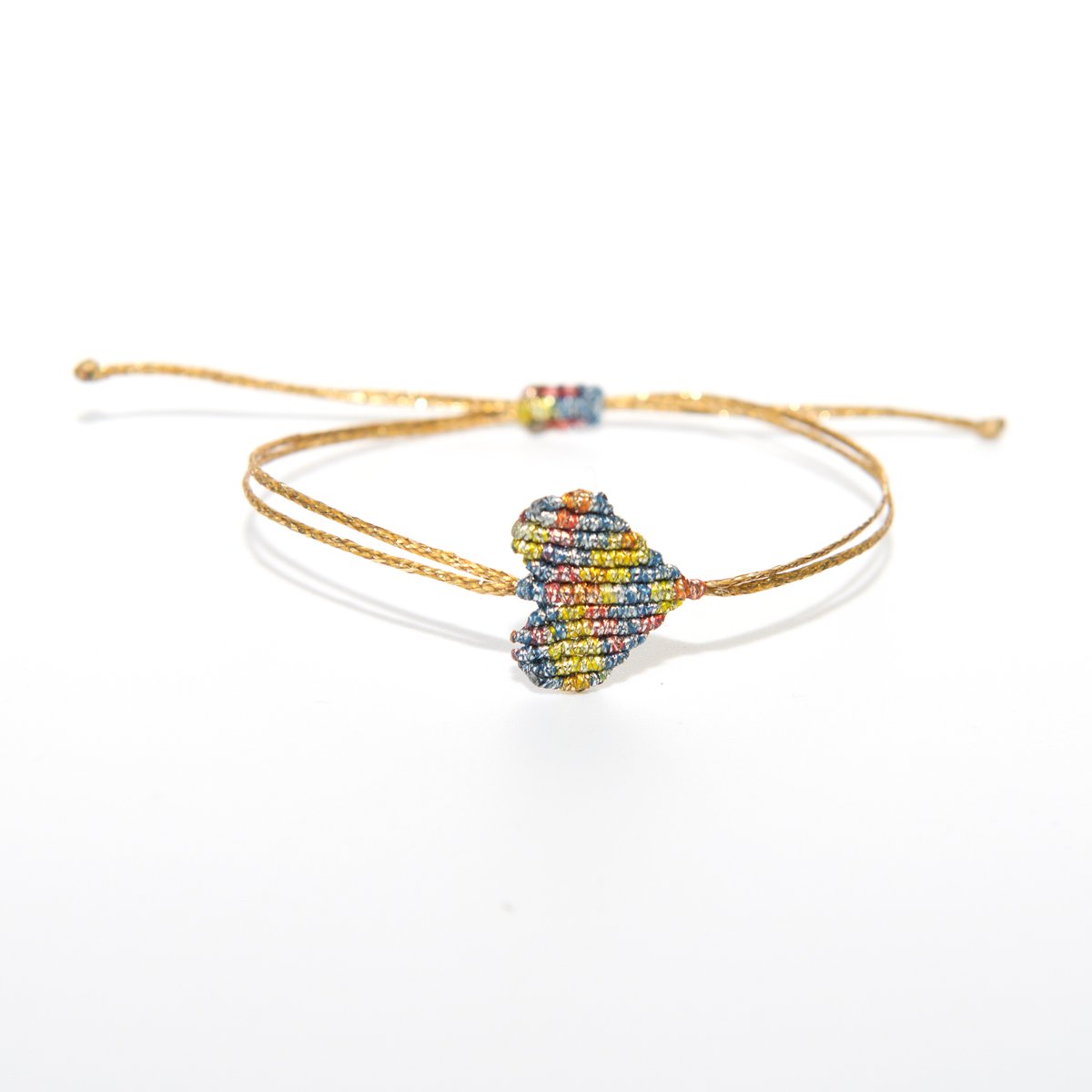 Βραχιόλι Macrame Καρδούλα Κίτρινη Πράσινη Μεταλιζέ