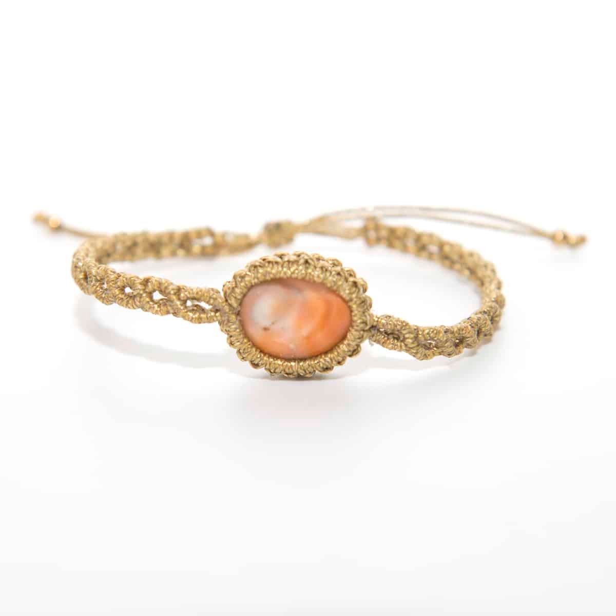 Βραχιόλι macrame ΜΑΤΙ ΘΑΛΑΣΣΑΣ χρυσό κρίκος με βασικό φυσικό υλικό ένα ιδιαίτερο κοχύλι, το τυχερό ματάκι της θάλασσας ή αλλιώς το μάτι της Παναγιάς.