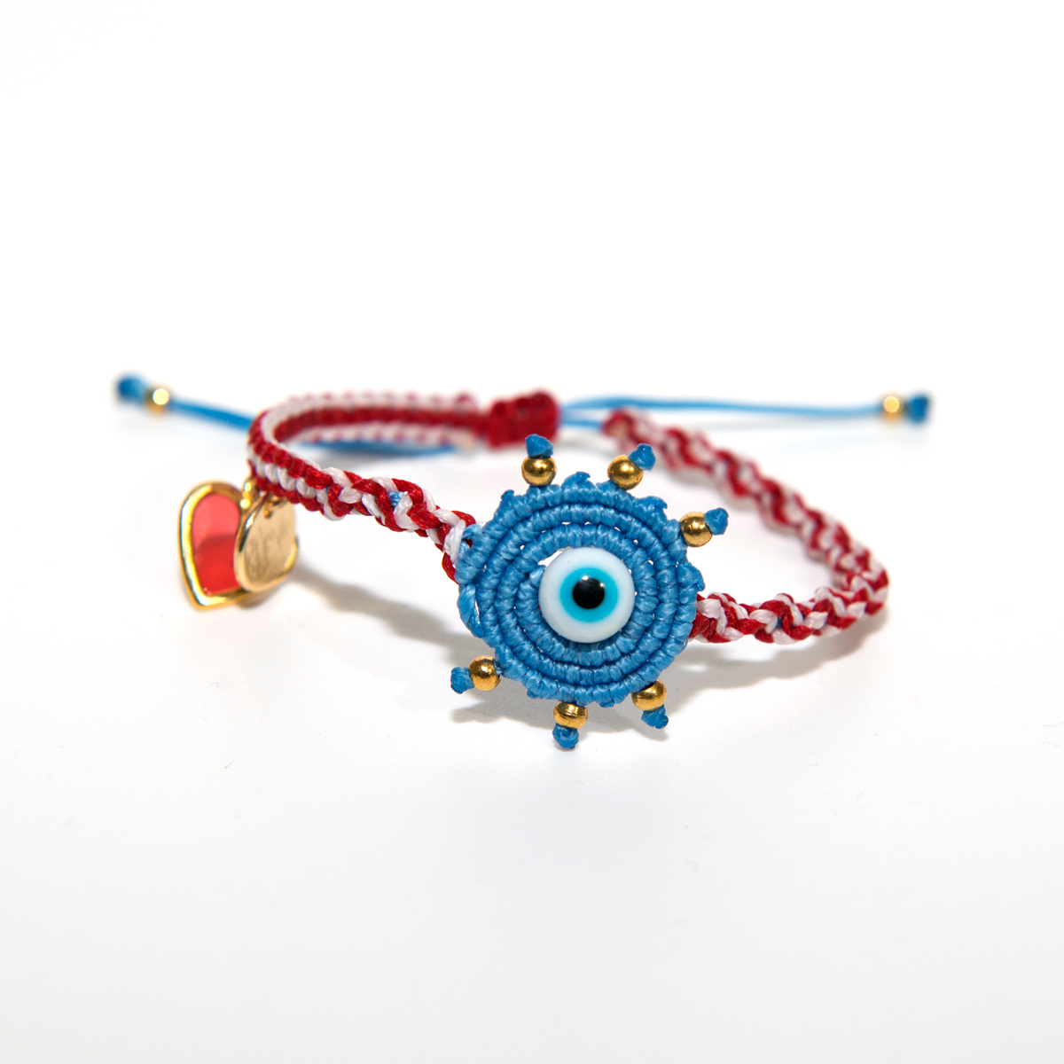 Βραχιόλι macrame NEFERTARI μαρτάκι γαλάζιο με κηροκλωστή ανθεκτική στο νερό χωρίς να χάνει το χρώμα της. Με κούμπωμα αυξομείωσης.