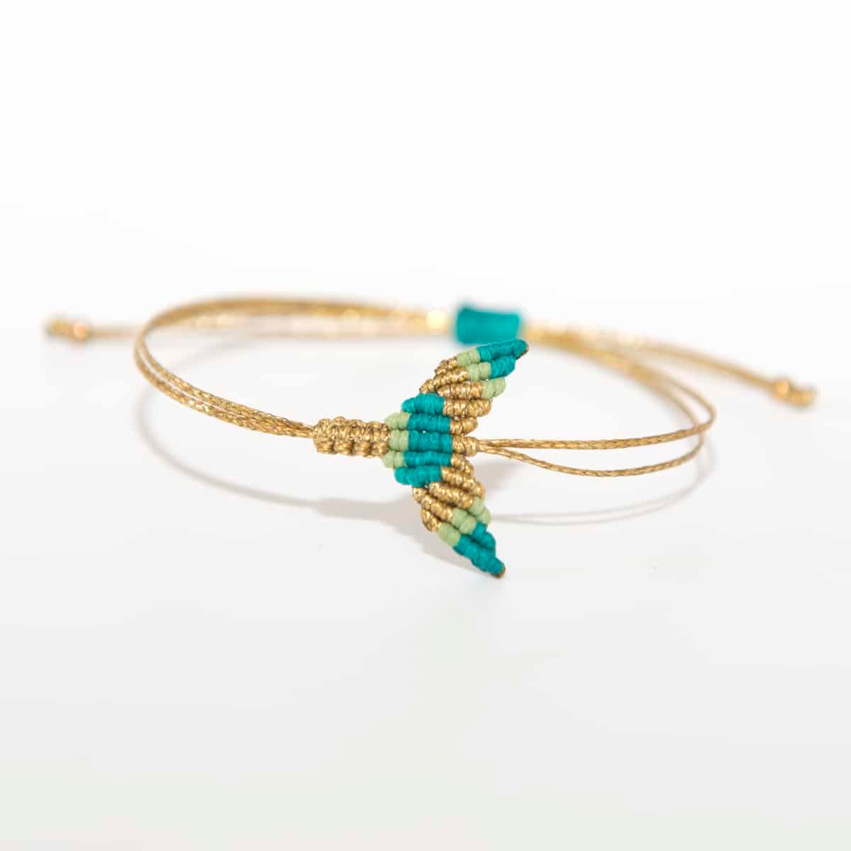 Βραχιόλι Macrame Ουρά τιρκουάζ φυστικί χρυσό με κηροκλωστή ανθεκτική στο νερό χωρίς να χάνει το χρώμα της. Με κούμπωμα αυξομείωσης.