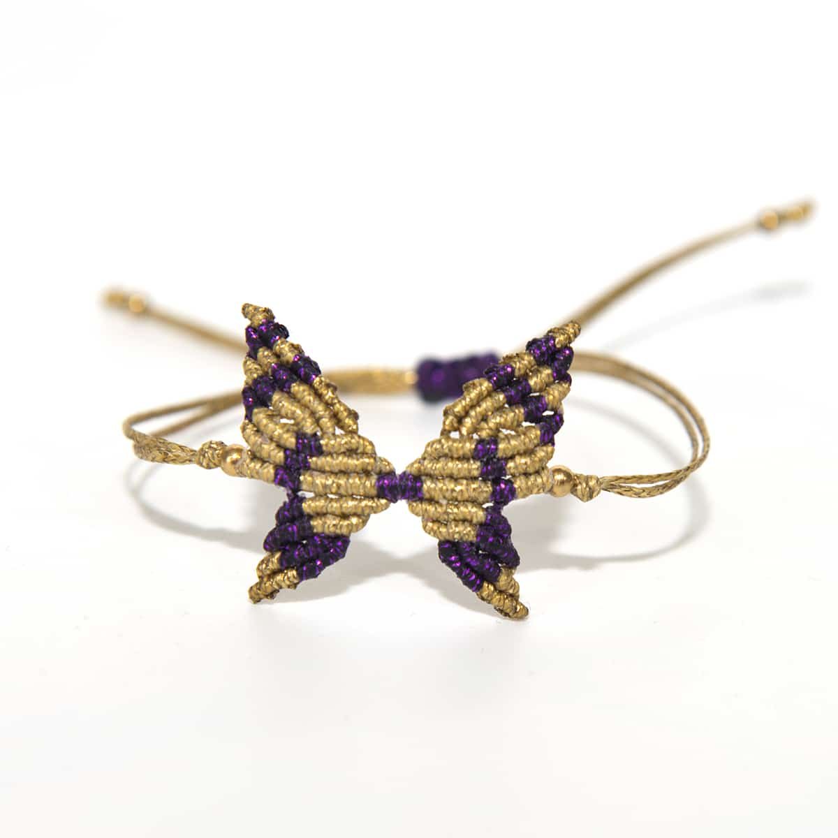 Βραχιόλι Macrame Πεταλούδα Χρυσό Μωβ Μεταλιζέ