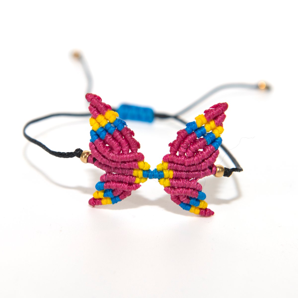 Βραχιόλι Macrame Πεταλούδα Φούξια Μπλε Κίτρινο