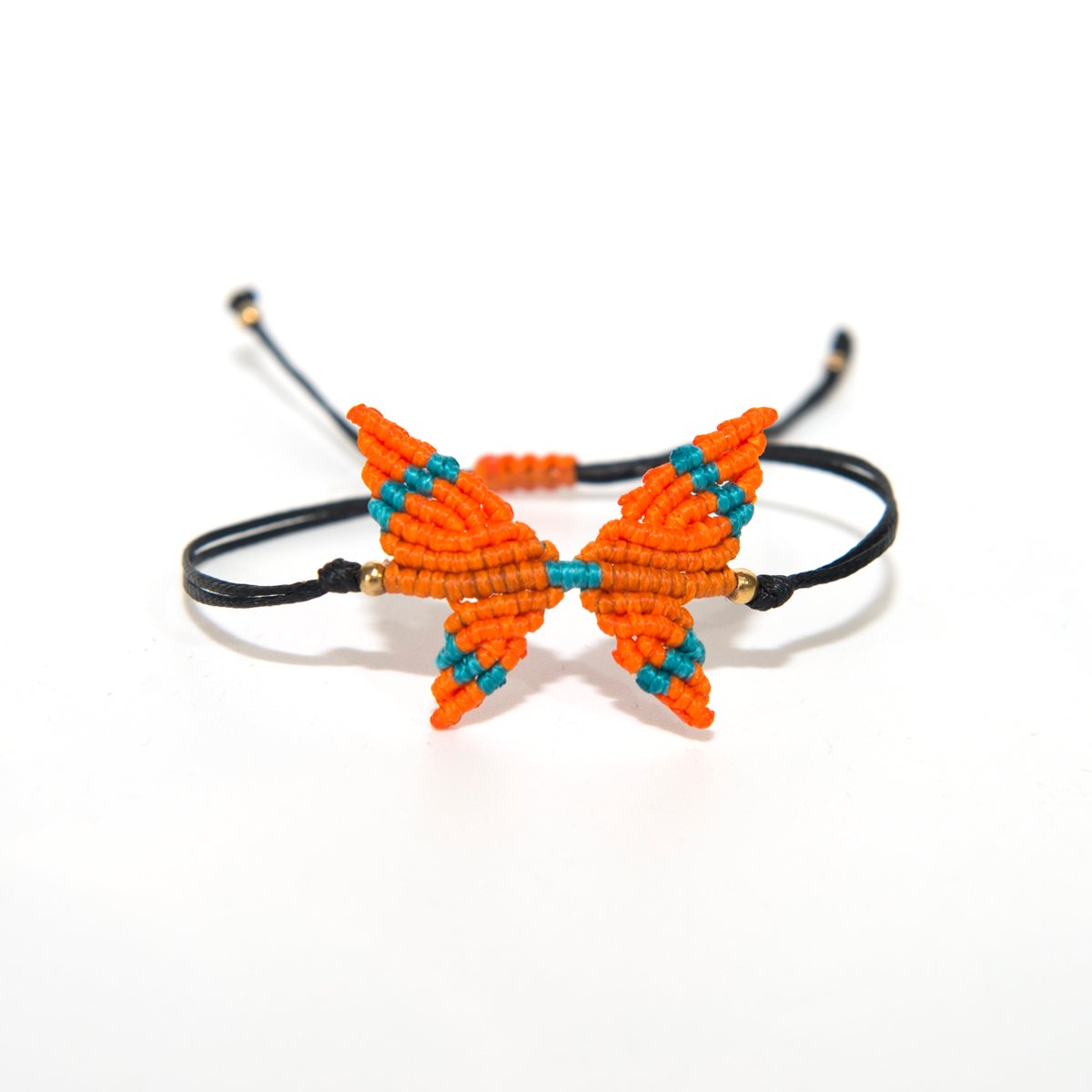 Βραχιόλι macrame πεταλούδα με κηροκλωστή ανθεκτική στο νερό χωρίς να χάνει το χρώμα της. Με κούμπωμα αυξομείωσης.
