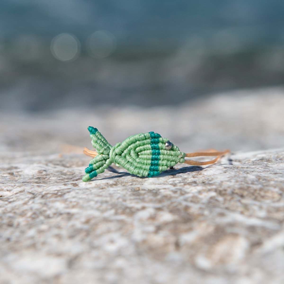 Βραχιόλι Macrame – Ψάρι Μέντα ριγέ