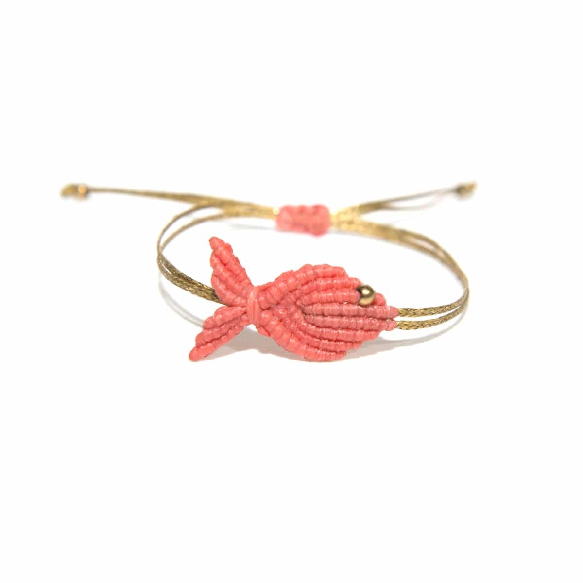 Βραχιόλι macrame ψάρι σομόν με κηροκλωστή ανθεκτική στο νερό χωρίς να χάνει το χρώμα της. Με κούμπωμα αυξομείωσης.