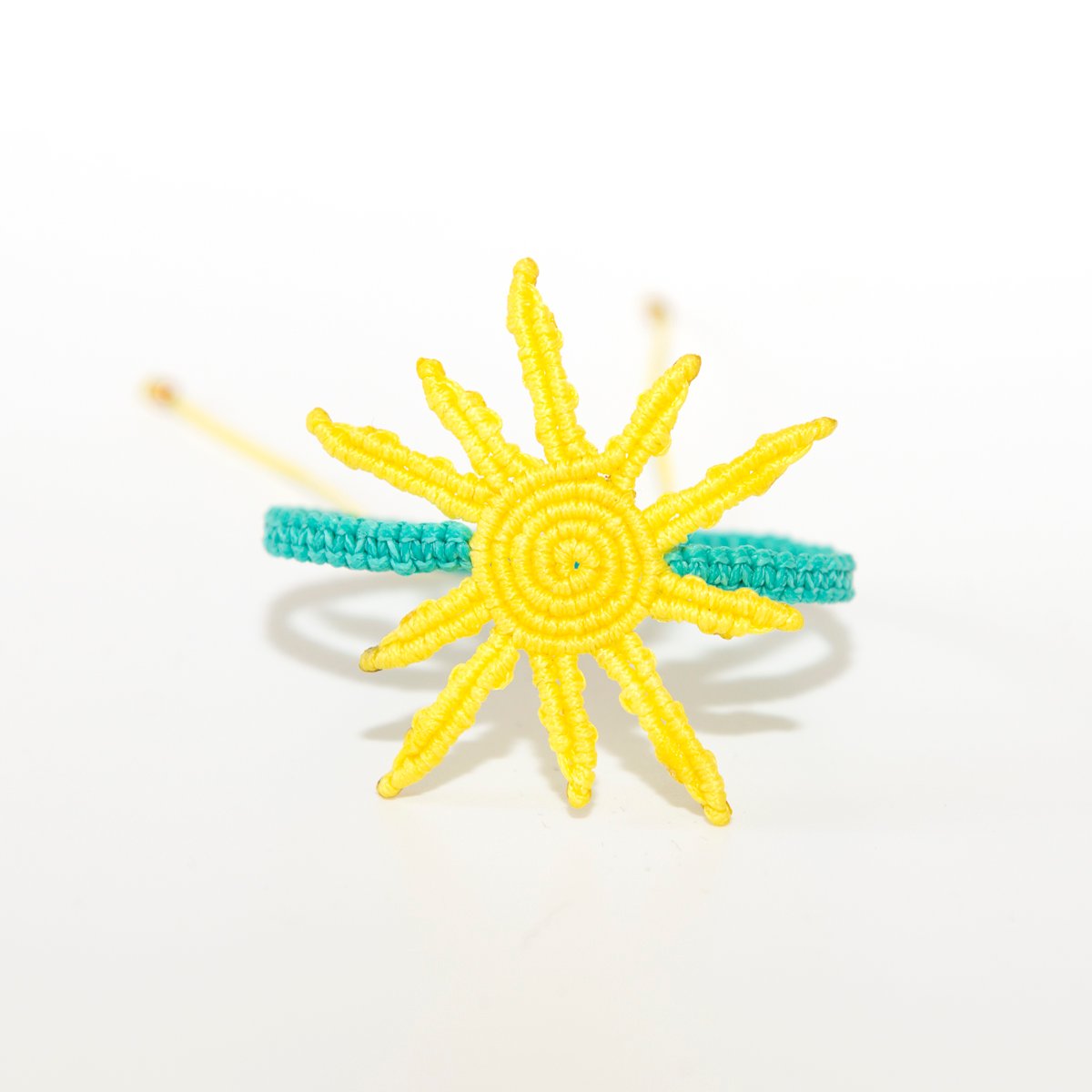 Βραχιόλι macrame SUN κίτρινο τιρκουάζ με κηροκλωστή ανθεκτική στο νερό χωρίς να χάνει το χρώμα της.